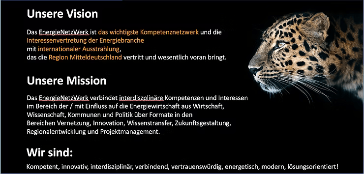 - With these characteristics, the cheetah as a leading figure underpins the identity and action orientation of the Energy Network